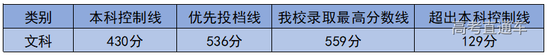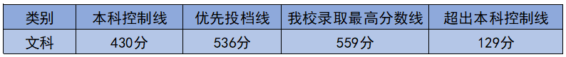 投至我校的考生为文科559分,超过广东省文科优先投档线23分,超过广东省本科录取最低控制线129分,排位为:10466,该生报考的第一志愿为翻译专业。