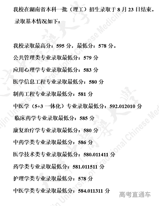 天津中医药大学2020在湖南省本科一批(理工)招生录取结束