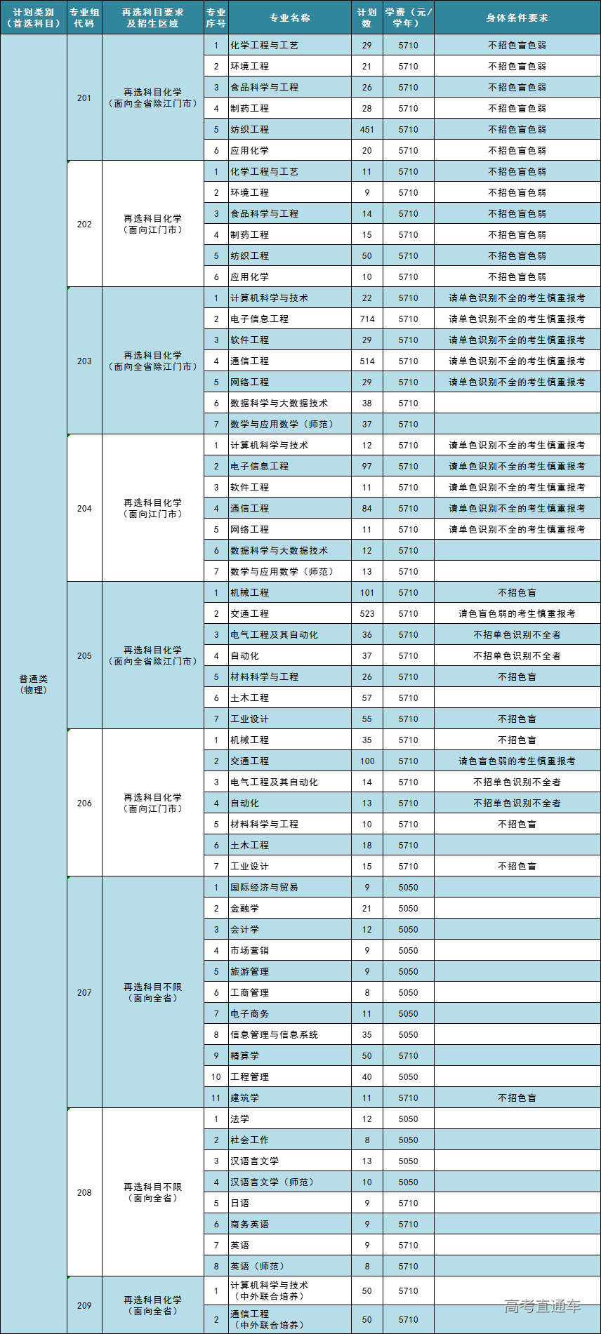 五邑大学2024年分模块培养招生专业