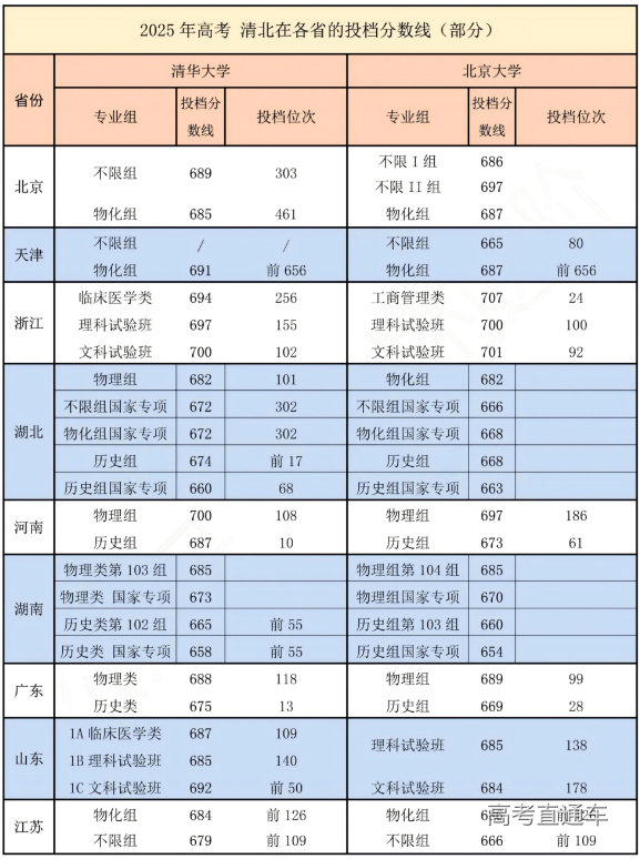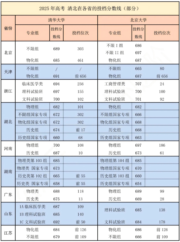 附清华大学在部分省份的高考投档分数线👇