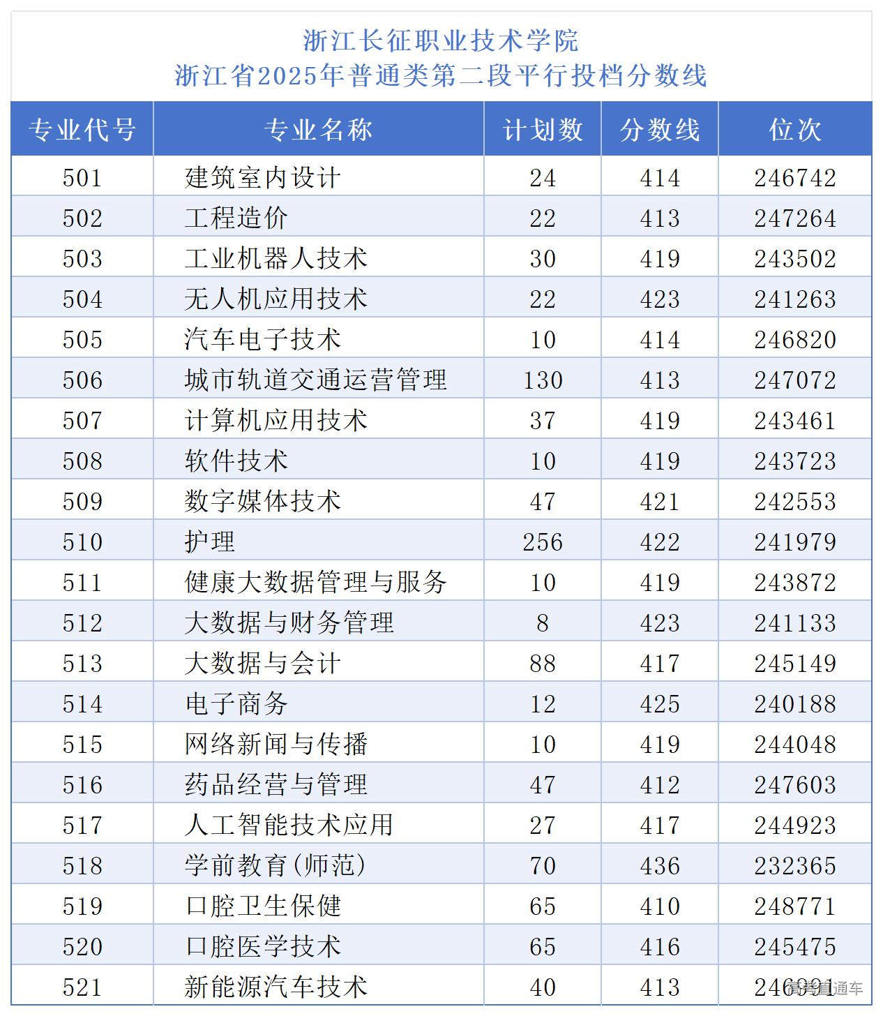 浙江长征职业技术学院浙江省2025年普通类第二段平行投档分数线