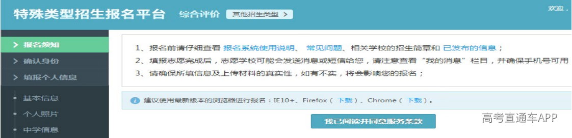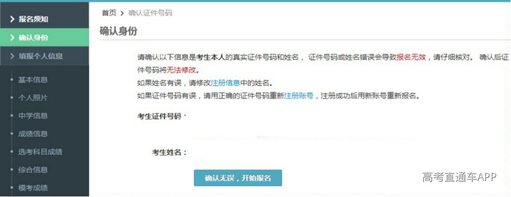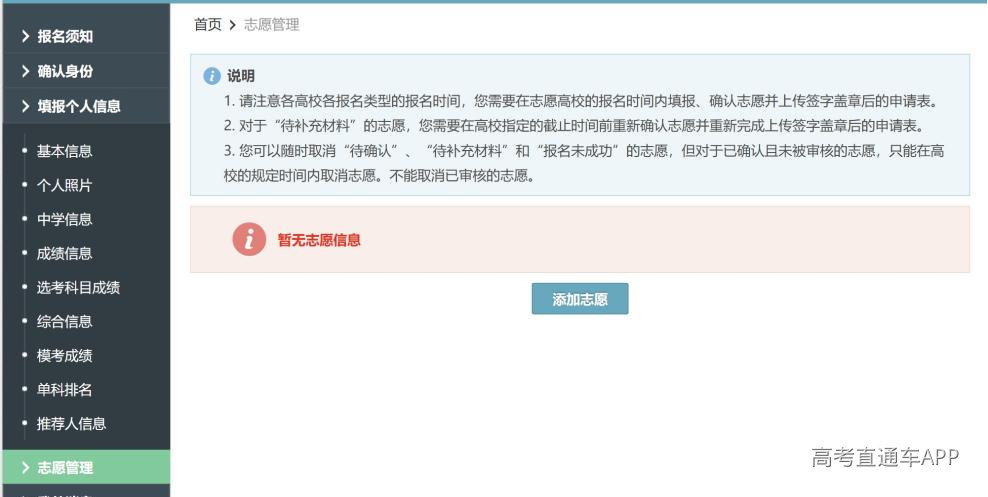 信息填写完毕后点击“我已阅读并同意服务条款”,继续点击“确认无误,开始报名”,可以开始填报志愿。