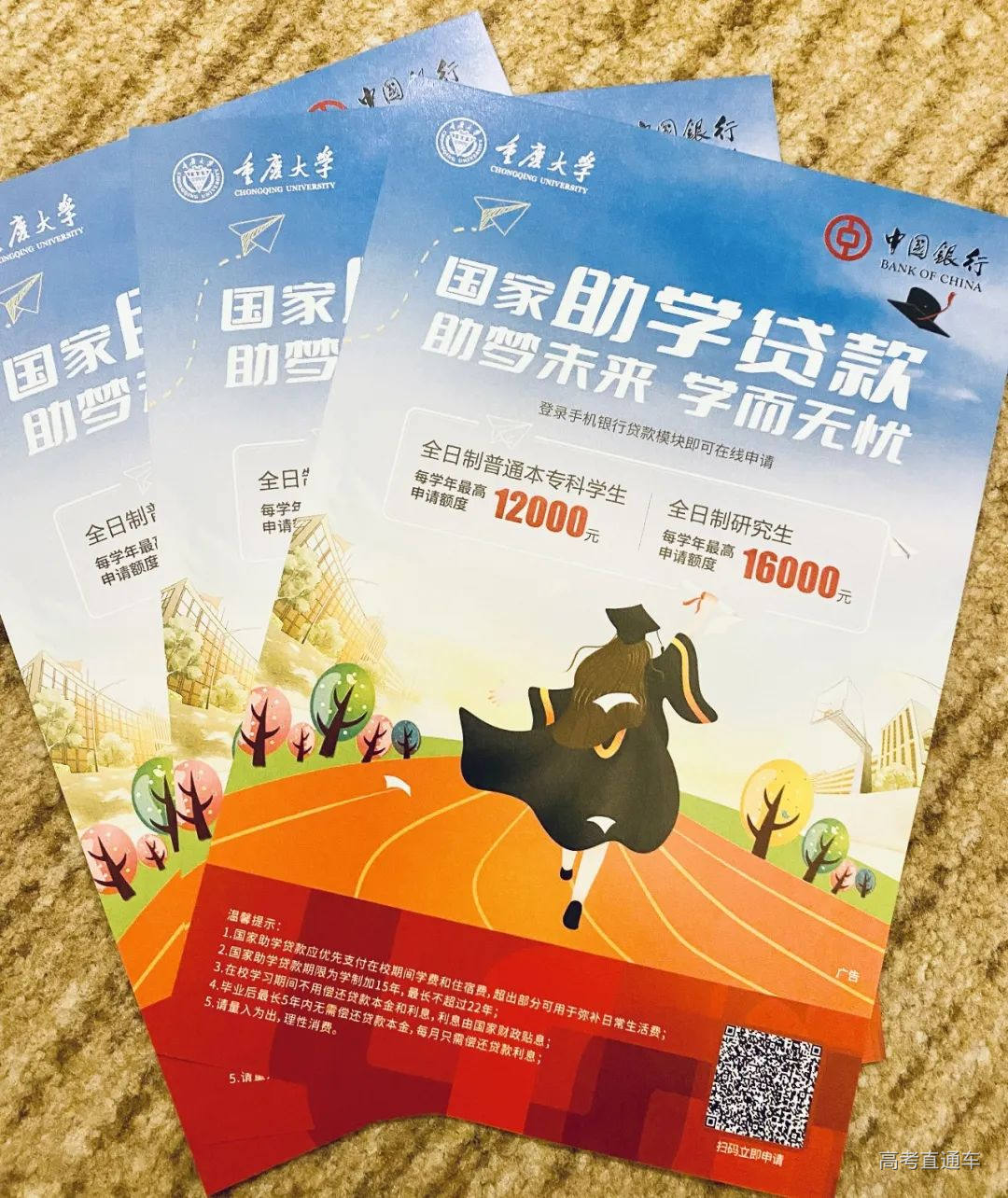 包裹内附有由全国学生资助管理中心印发的高校本专科学生资助政策简介手册,以及国家助学贷款宣传单、重庆大学家庭经济困难学生认定申请表。