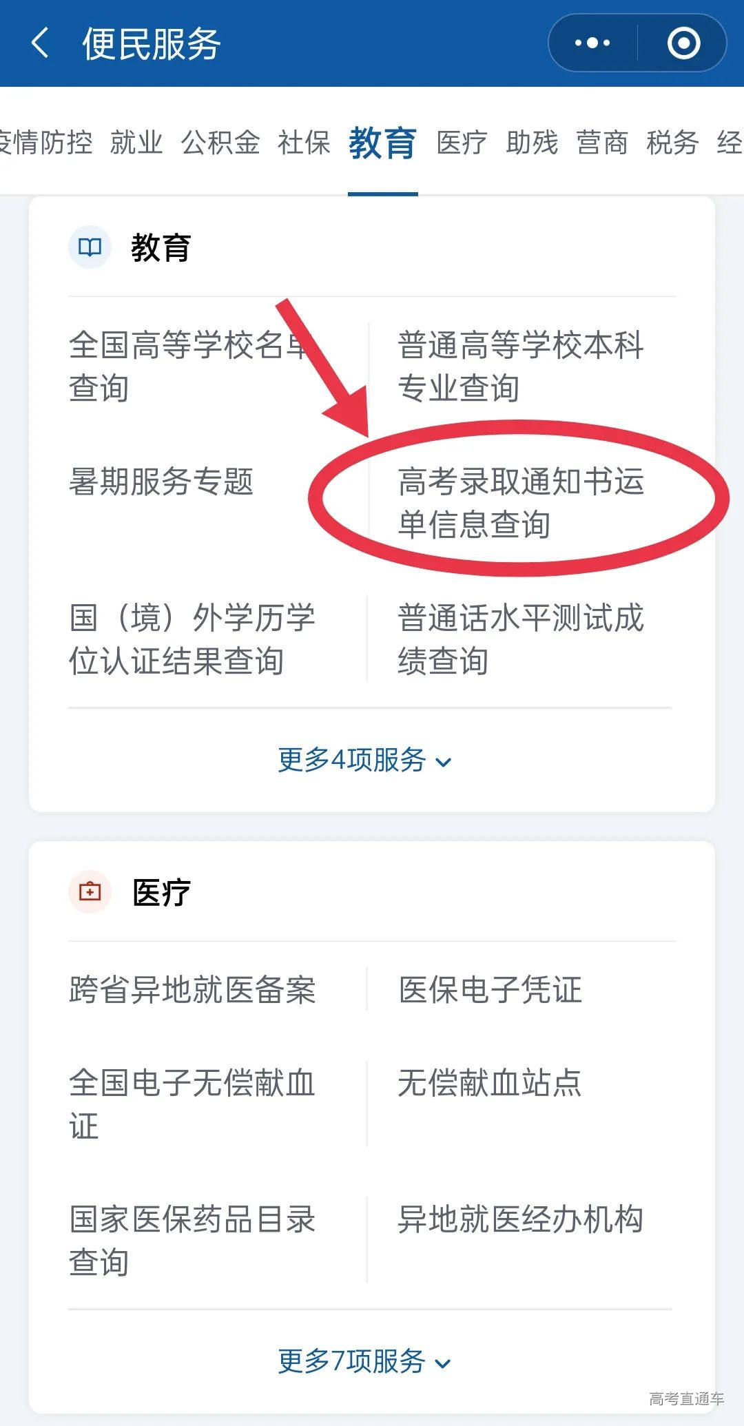 打开国务院客户端小程序,在“便民服务”中找到“高考录取通知书运单信息查询”,输入相关信息即可查询。