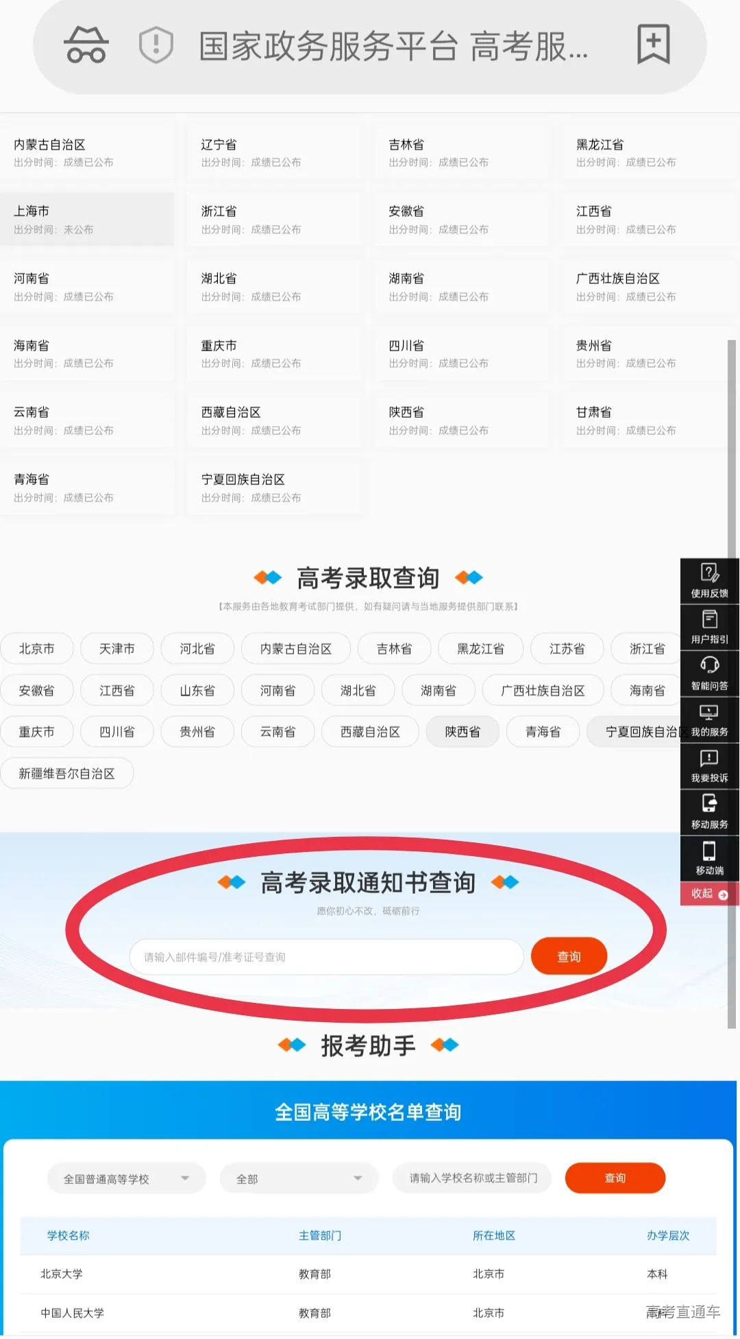 全国各省市皆可在阳光高考平台中查询本地省招办官网入口: