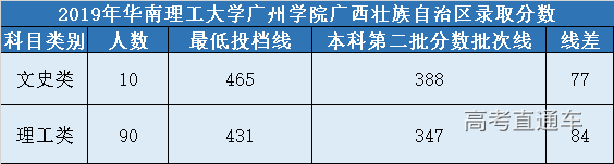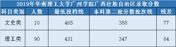 2019年7月25日录取快讯:【广西壮族自治区】已录取结束,原计划数100人,实际录取100人,其中理科计划90人,实际录取90人,最低投档分为431分,高出省控线84分,热门专业为土木工程;文科计划10人,实际录取10人,最低投档分为465分,高出省控线77分,热门专业为商务英语。
