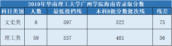 2019年7月29日录取快讯:【海南省】已录取结束,共录取65人,其中理科录取59人,最低录取分为537分,高出省控线56分,热门专业为通信工程;文科录取6人,最低录取分为597分,高出省控线75分,高出上一批次省控线4分!文科热门专业为会计学(双语注会班) 。