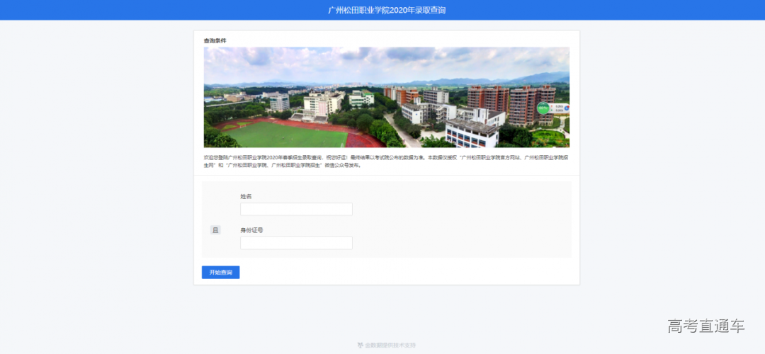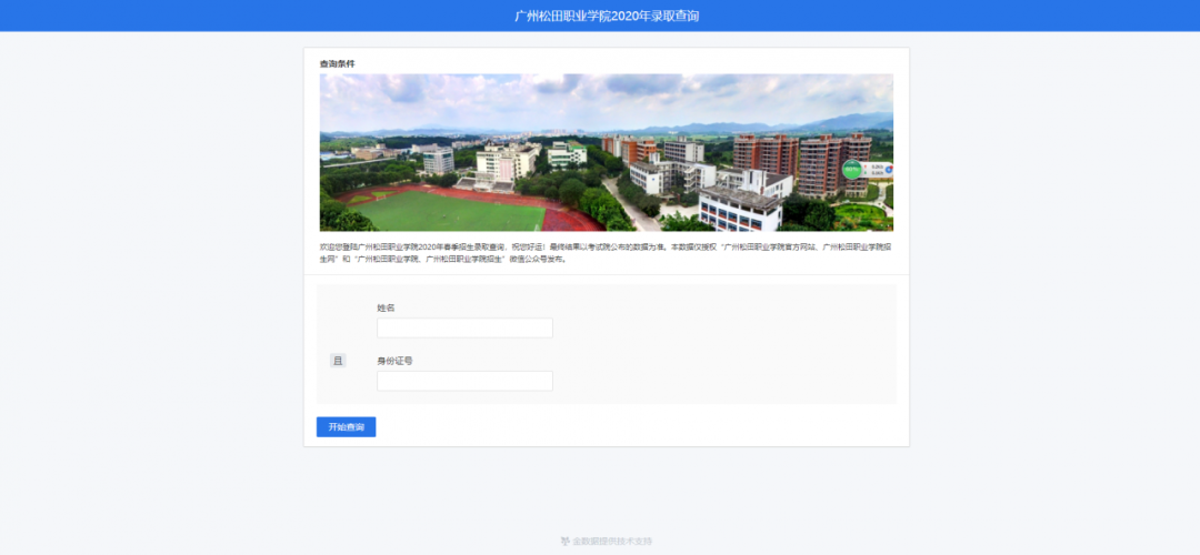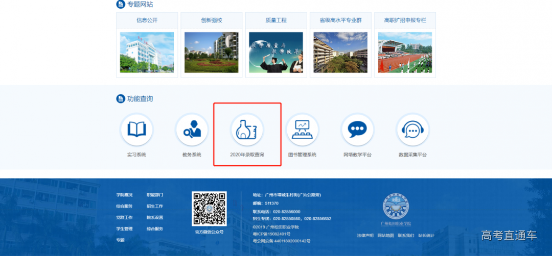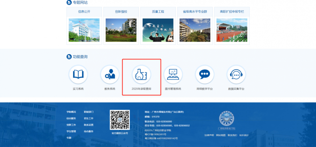 打开“广州松田职业学院”官方网站,滑动到最下面,点击录取查询