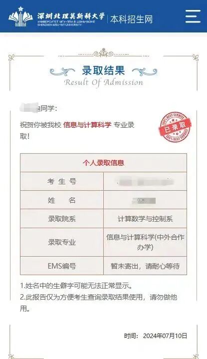 注:因数据处理校对需要一定时间,考生可在我校录取结果查询系统查询到录取结果的时间可能比在省级招生主管部门信息系统查询到录取结果时间晚2-3天左右,请考生耐心等待并持续关注。
