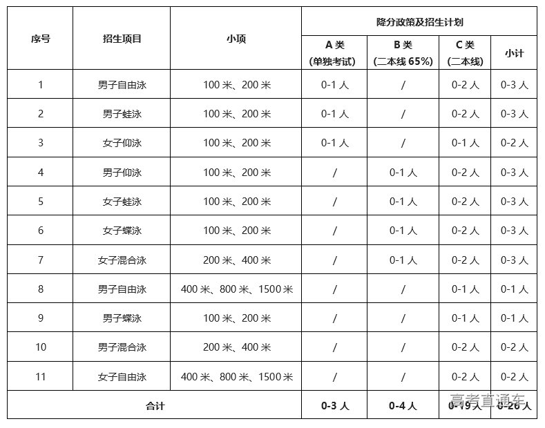 男子足球、游泳项目由国家体育总局组织统测,我校不再组织校考。具体注册、报名、测试安排等以国家体育总局公布为准,请及时关注“中国运动文化教育网”或“体教联盟APP”相关通知。