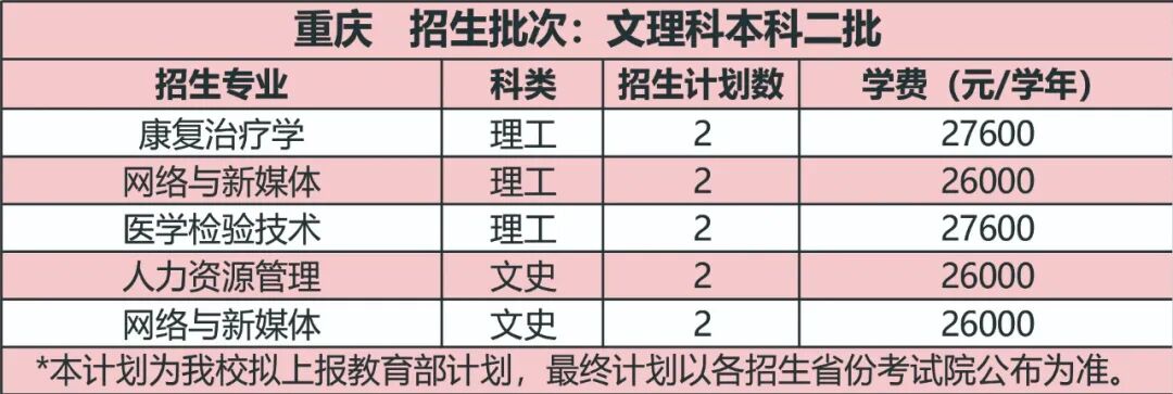 *医学检验技术专业不招收色盲色弱考生;康复治疗学专业不招收色盲色弱考生。