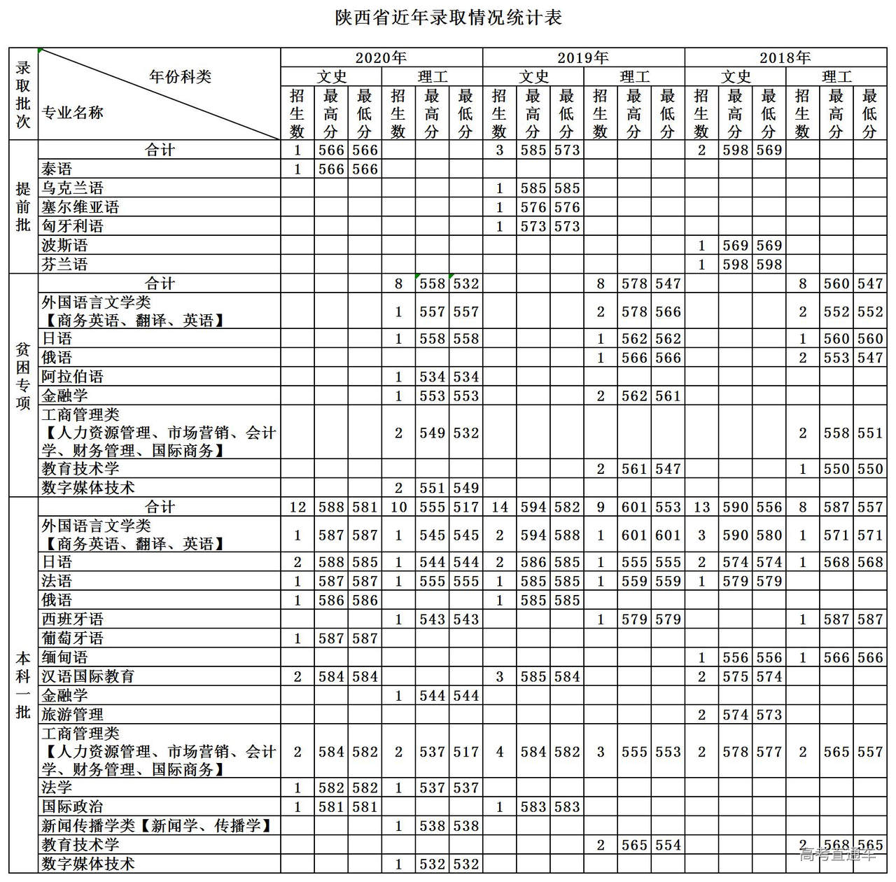2020年天津外国语大学在陕西分专业录取分数线