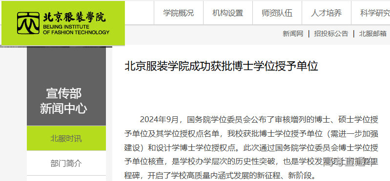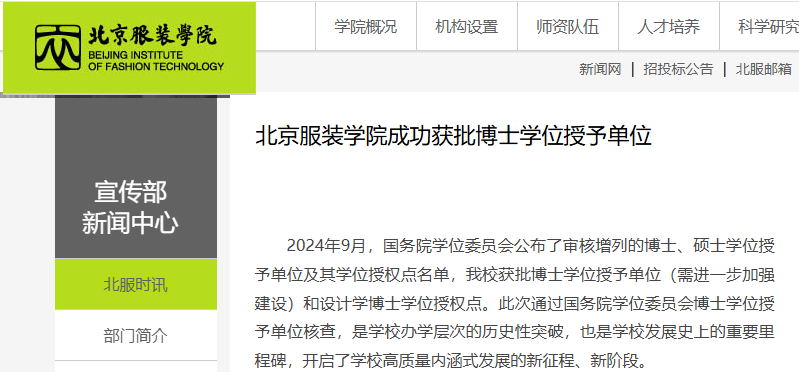 近日,国务院学位委员会印发了《关于下达需要建设的新增博士、硕士学位授予单位建设进展结果的通知》(学位办〔2025〕12号),我国第一所公办服装高校北京服装学院顺利通过了博士学位授予单位建设进展核查,正式获批博士学位授予单位。