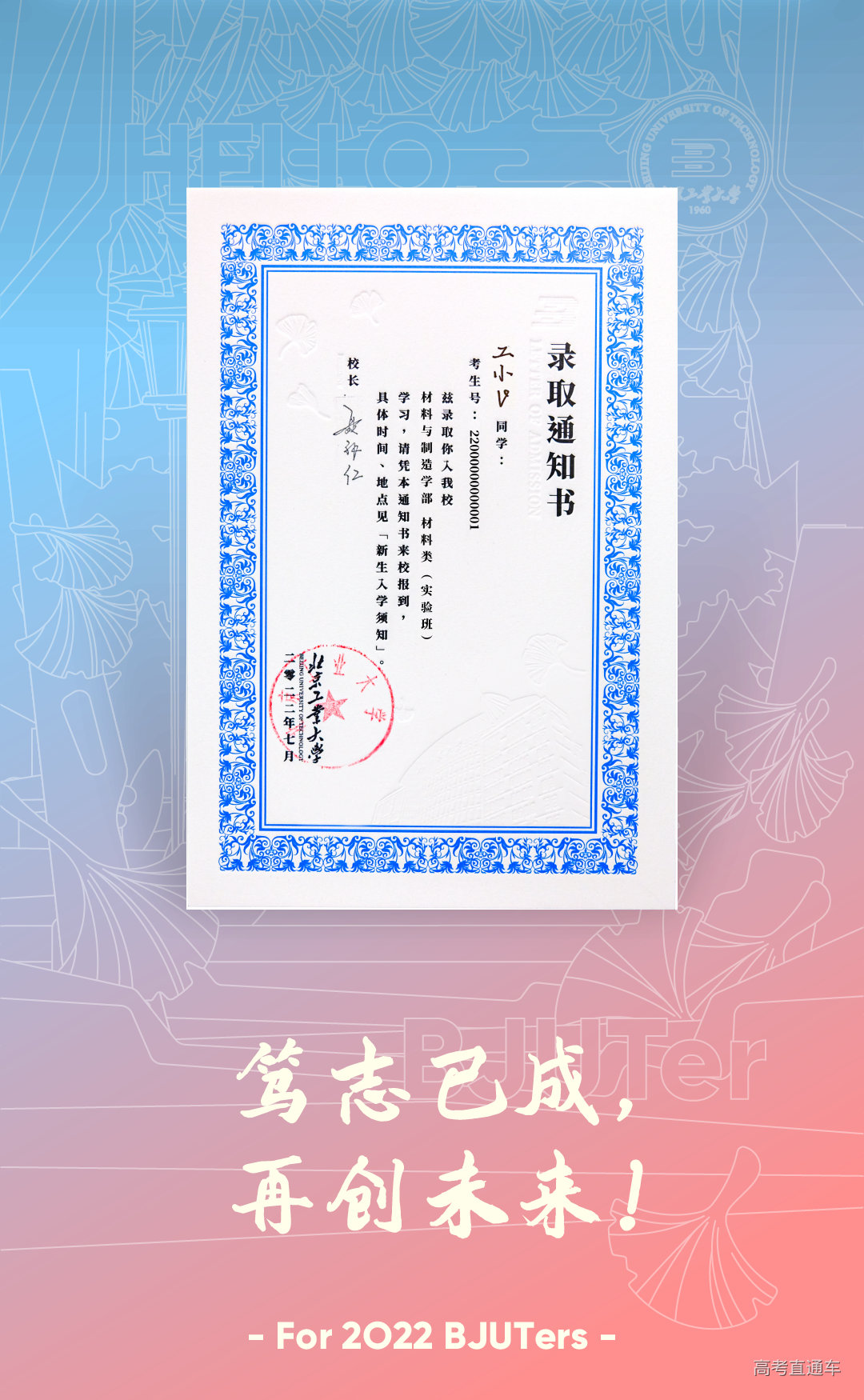 北工大2022级本科生录取通知书