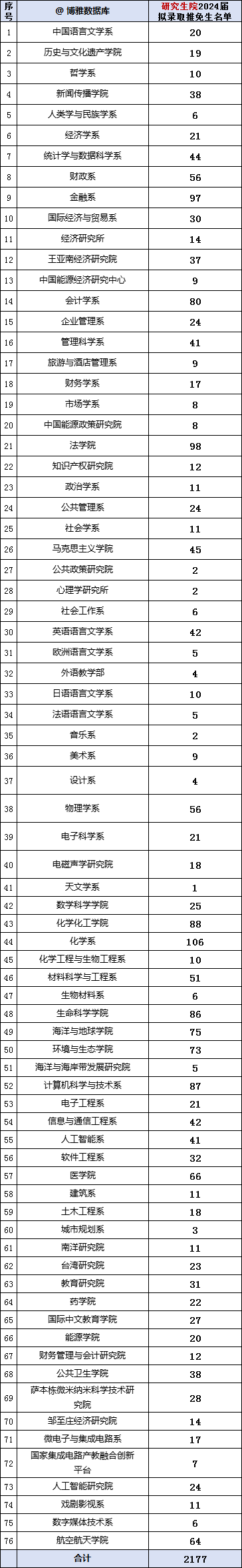 研究生院拟录取: (研究生院)2024拟录取推免生2177 人。