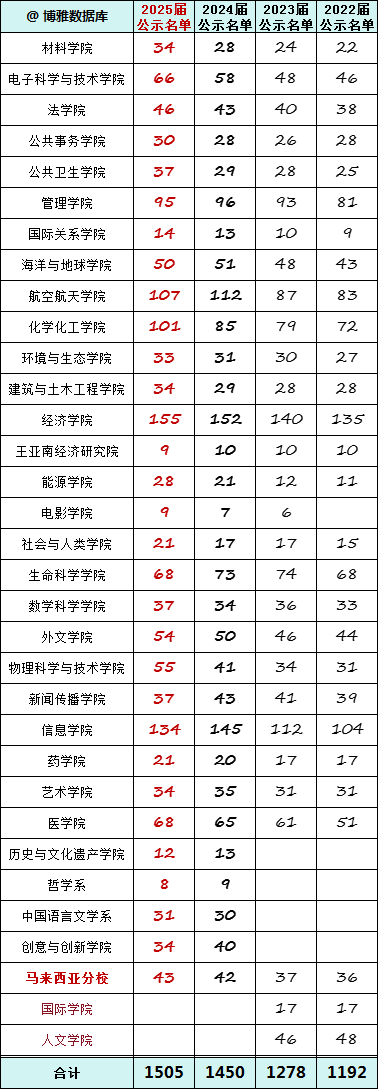 根据 厦门大学2025推免生名单公示,共计1505人。