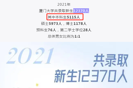 厦门大学,教育部直属985高校、世界一流大学建设高校。学校于1921年创办,被誉为“中国最美大学”。现由教育部、GF科工、福建省和厦门市共建,共建有思明、漳州、翔安校区和马来西亚分校等。学校建有思明校区、漳州校区、翔安校区和马来西亚分校,设有研究生院、 6 个学部以及 34 个学院(直属系、直属中心)和 17 个研究院,形成了覆盖哲学、 经济学、法学、教育学、文学、历史学、理学、工学、医学、管理学、艺术学、 交叉学科 12 个学科门类的学科体系。设有 32 个博士后流动站。2022 年,学校 入选国家公布的第二轮“双一流”建设高校名单,化学、生物学、海洋科学、生 态学、统计学、教育学共 6 个学科入选第二轮“双一流”建设学科名单。学校现有 104 个本科专业,人文社科类、理工医科类专业比例为 1:1,逐 步形成基础与应用并重、文理特色鲜明、医工快速发展的多学科专业布局,其中 64 个专业入选国家级一流本科专业建设点、34 个专业入选省级一流本科专业建 设点。本学年共有本科在校生 21030 人,全日制在校生总规模为 42187 人,本科 生数占全日制在校生总数的比例为 49.85%。