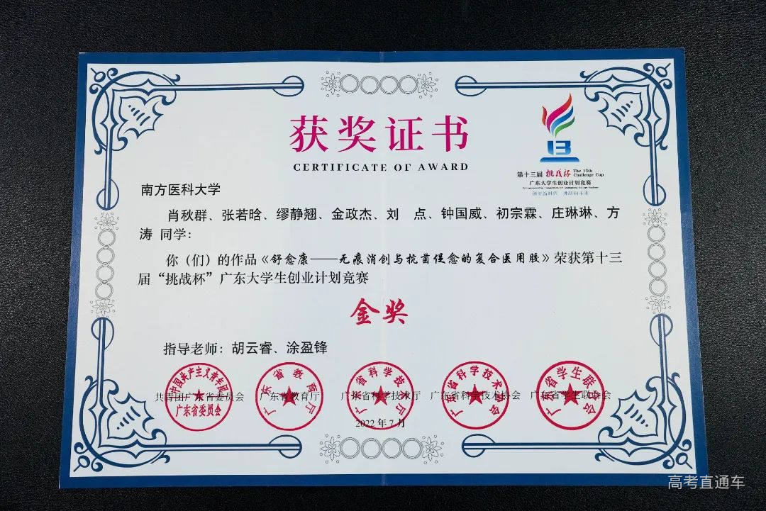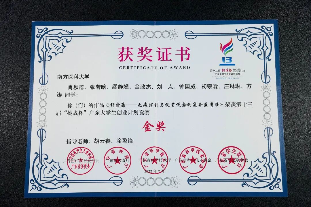 学生获第十三届”挑战杯“广东大学生创业竞赛金奖