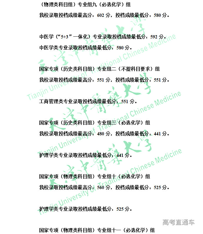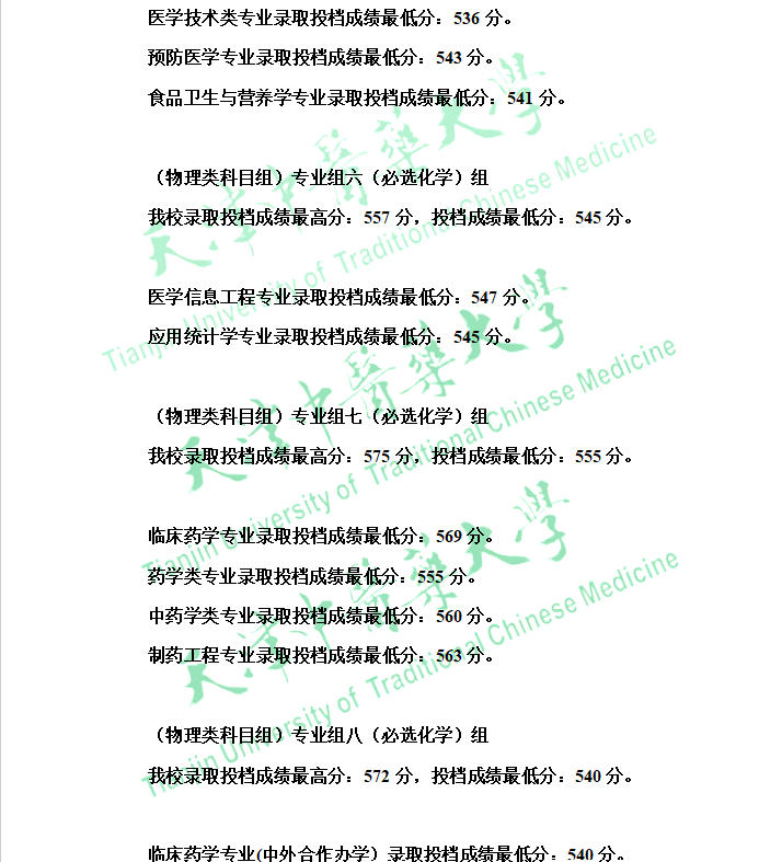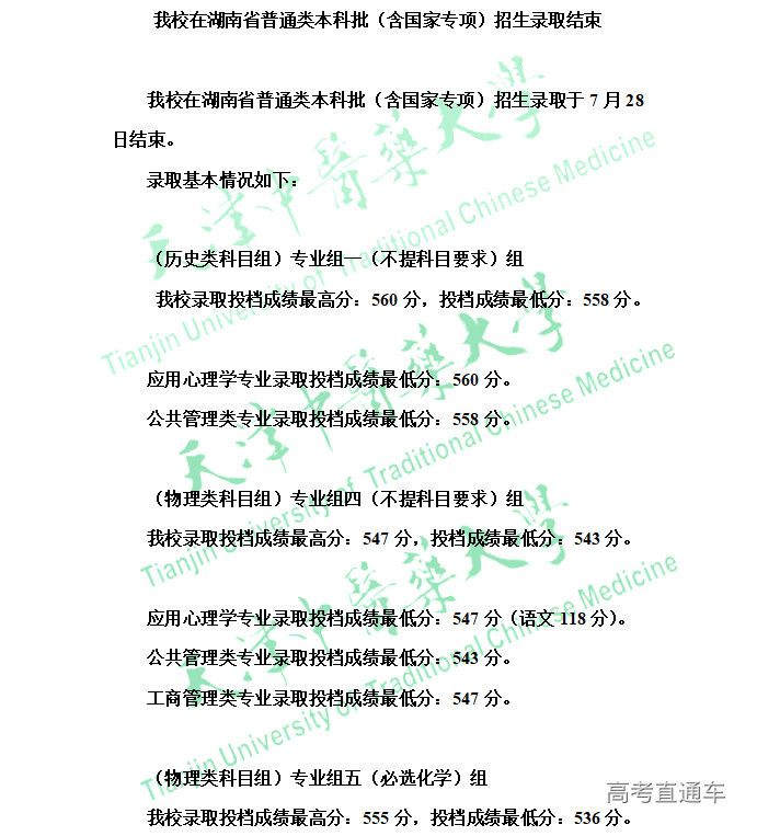 天津中医药大学2024年湖南省普通类本科批(含国家专项)录取分数线公布