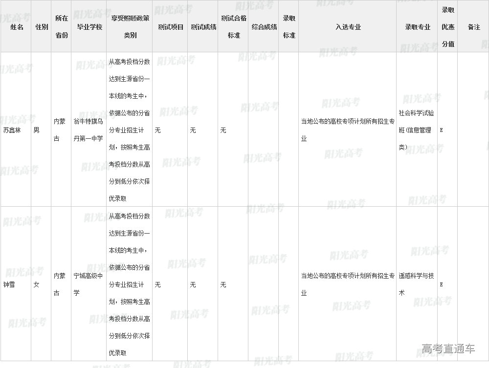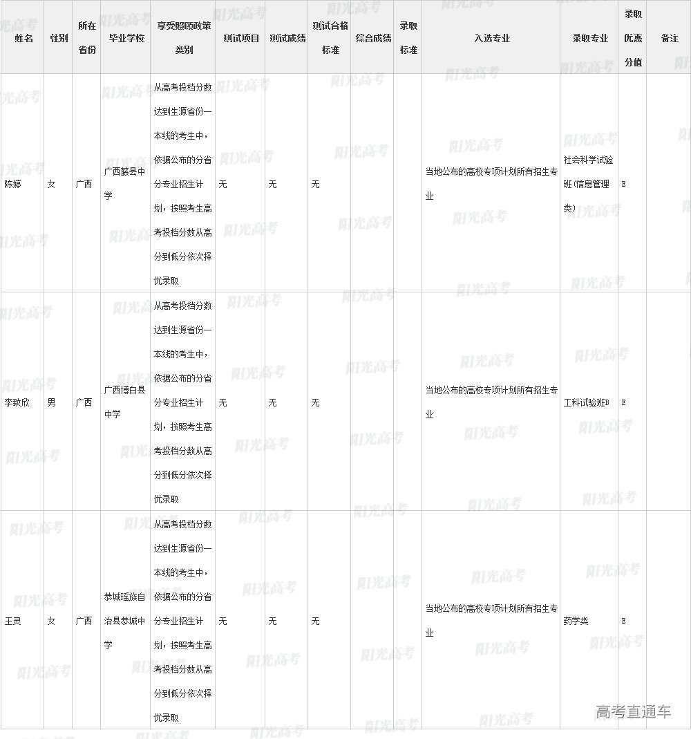 ②入选考生达到生源所在省份一本批次录取控制分数线即予以录取的,以“C”标注;也可是"C"+"数字",表示一本批次录取控制线上多少分录取,如C20表示一本批次录取控制线上20分录取;