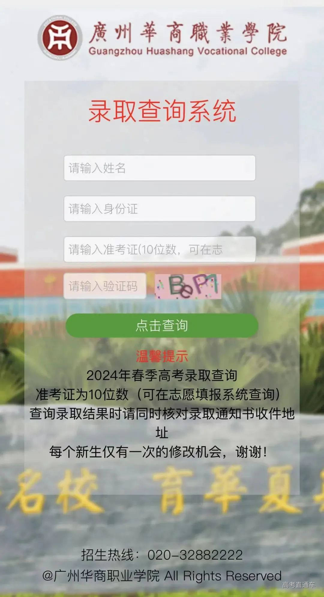 1. 输入网址:http://zsb.gzhsvc.edu.cn/