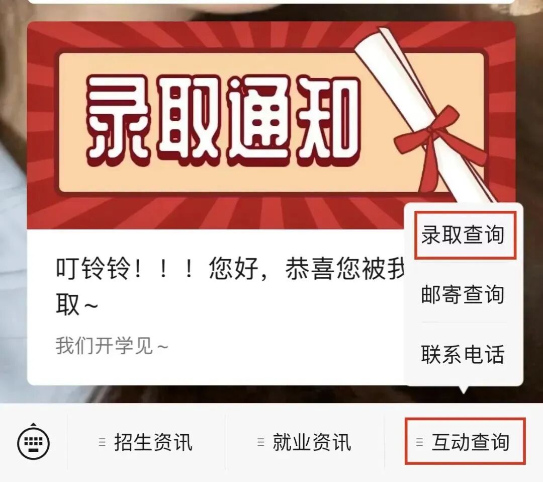方式二:进入会话窗口点击互动查询→录取查询