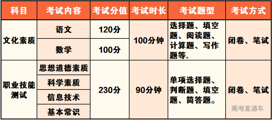 (三)考试内容:文化素质考试+技能测试,总分450。