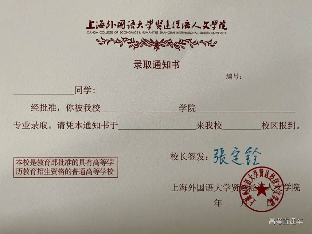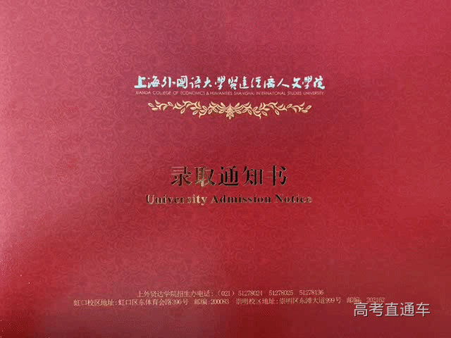 上海外国语大学贤达经济人文学院录取通知书寓意:开启世界名校大门的金钥匙。