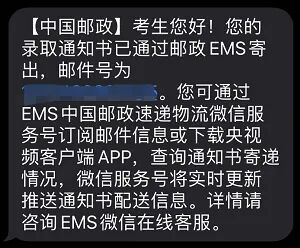 为了方便考生第一时间知晓我校发录取通知书的动态,我校对每一位录取的考生,均会通过手机短信告知(接受手机号码为考生高考填报时所登记号码)。