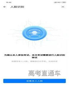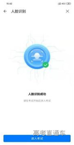 (五)在人脸识别页面,点击页面下方“采集本人人脸”按钮,确保考试手机摄像头正对考生面部,点击页面下方拍照按钮后,点击页面右上角的“√”,对拍摄照片进行确认提交,然后自动进入系统人脸识别认证阶段。认证成功后,提示“人脸识别成功”(见图4)
