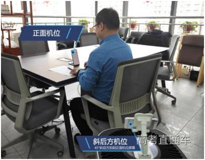 (五)考生需将监考手机固定在侧后方约45度角的位置,监考手机必须监控到考生答题全部环境。监考手机摆放位置见图6,监控画面参照图7。