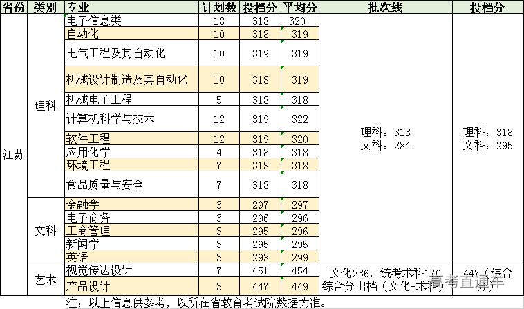 2020年电子科技大学中山学院在江苏分专业录取分数线