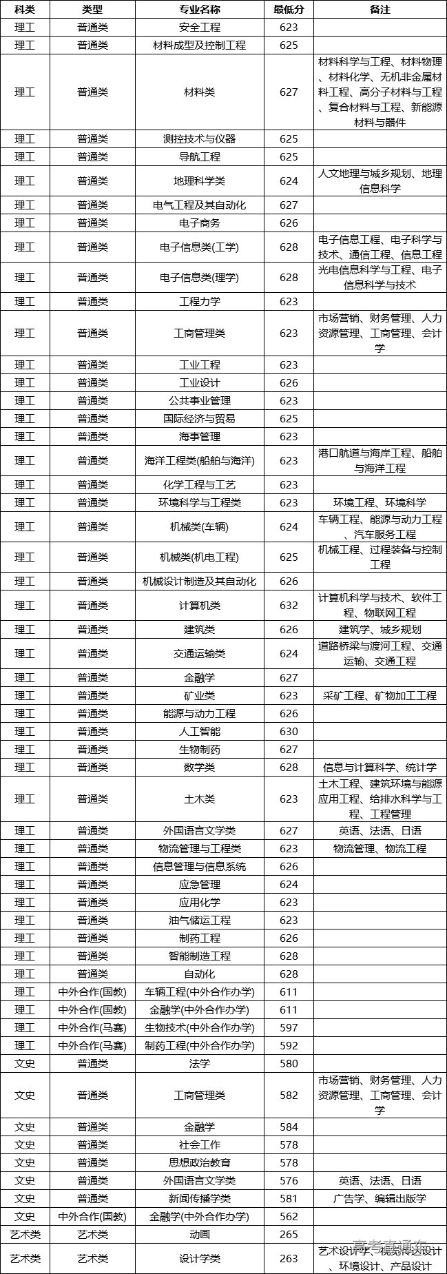 2020年武汉理工大学在四川省分专业录取分数线