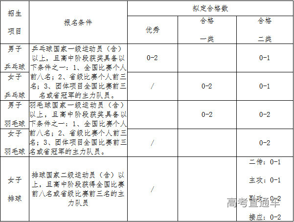 2、考生应持有与报考运动项目一致的运动员技术等级证书(原则上运动小项也应对应一致,田径项目须严格对应),且符合招生项目要求;