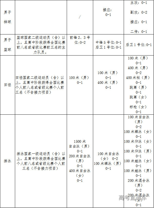 3、符合全国大学生比赛相关赛事的参赛资格要求。排球、乒乓球、羽毛球、篮球项目参加过限制性赛事的运动员不得报名。田径和游泳项目参加过限制性赛事的运动员,其报名要求须达到运动健将;具体限制赛事见附件1。