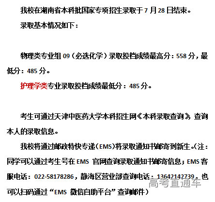 天津中医药大学2025年湖南省本科批国家专项招生录取结束