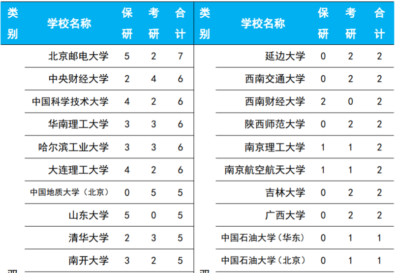 其中,有 1032 人国内升学,占本科毕业生总人 数的 51.68%,其中,379 人保研(占全校本科毕业生的 18.98%), 542 人考研(占 27.14%),第二学士学位 111 人(5.56%);国内升 学的 1032 名本科毕业生中,533 人(占 51.64%)选择本校升学,499 人(占 48.36%)选择外校升学。