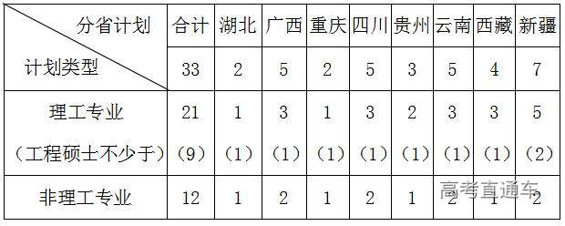 “少数民族高层次骨干人才招生计划”(以下简称“少高计划”)是国家定向培养专项招生计划(包括全日制、非全日制)。根据教育部文件精神,博士研究生计划全部安排在理工医类学科专业招生,招收博士研究生9名(其中工程博士研究生不少于3名);招收硕士研究生33名,具体名额分布见下表: