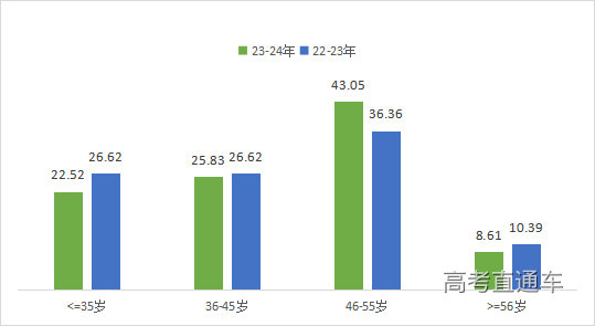 近两学年专任教师职称、学位、年龄结构分别见图1、图2、图3。