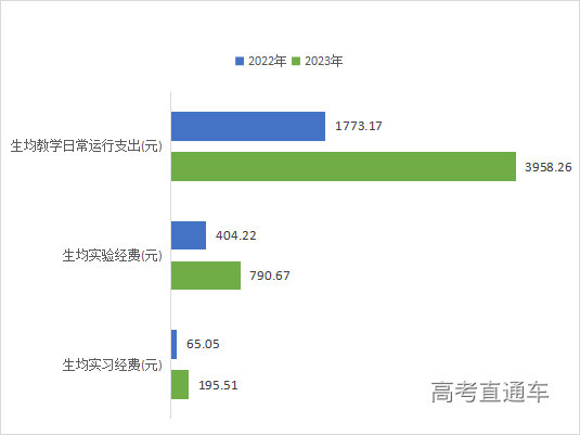 2023年教学日常运行支出为937.91万元,本科实验经费支出为137.26万元,本科实习经费支出为33.94万元。生均教学日常运行支出为3958.26元,生均本科实验经费为790.67元,生均实习经费为195.51元。