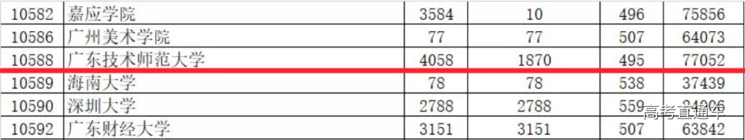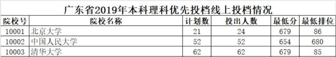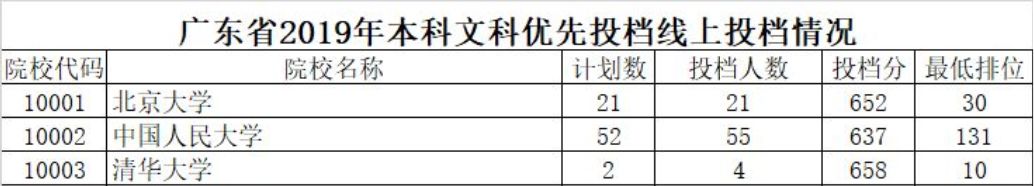 文科计划1117 出档646人 出档线546分 理科计划4008 出档1870人 出档线495分 本科高分优先投档的出档总人数2516人,超去年三倍多,已经占到我校2019年普通文理科广东省内招生计划总数5125人的49.09%。 2018年,我校优先投档线上线人数共794人。 根据招生录取日程安排,7月17日高分优先投档线上考生录取结束,同日本科院校普通文理类最低录取分数线也将进行投档。 各位报考我校的考生,请注意及时留意我校“本科招生信息网”近期陆续发布的相关高考招录信息。 查询网址: https://zs.gpnu.edu.cn/index.html