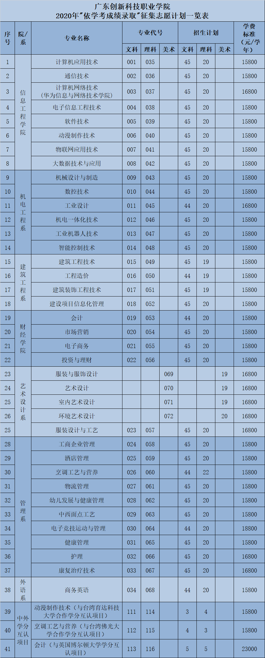 广东创新科技职业学院2020年春季高考“依学考成绩录取”征集志愿公布