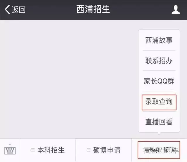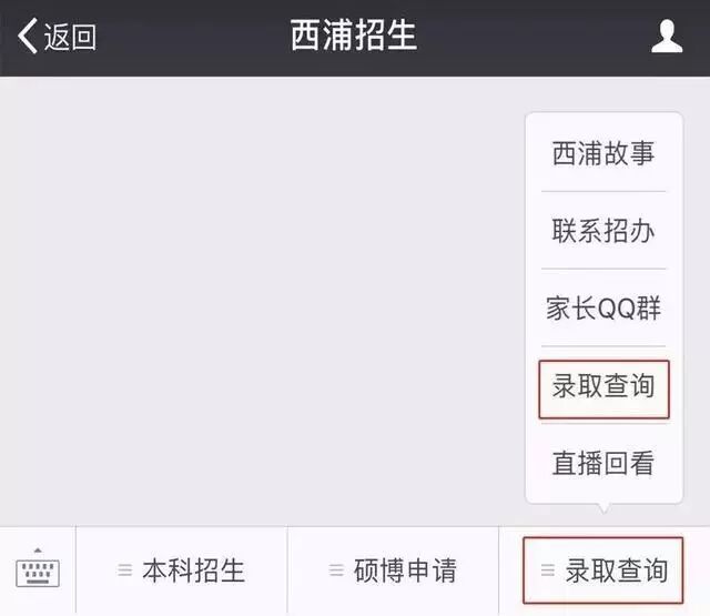 为方便考生及时准确了解到西交利物浦大学的录取情况,西浦招生(XJTLU-Admissions)微信公众号专门设置了“录取查询”服务。考生可凭考生号和姓名登录查询系统,在手机端方便地查询到录取结果。查询方式如下图所示:
