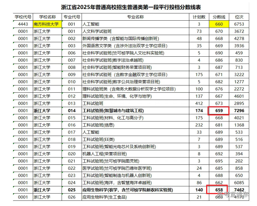 ✅浙江省投档最低分660分,位次6753,超浙江大学部分专业分数线。如:浙江大学工科试验班(智慧城市与建筑工程),最低投档分数线659分,位次7296。