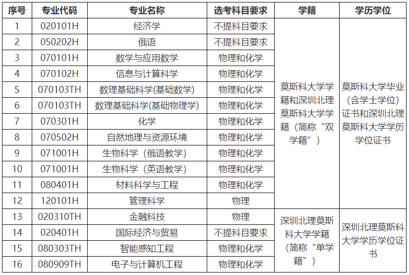 1.“双学籍”专业录取的学生将注册深圳北理莫斯科大学和莫斯科大学两校学籍,达到毕业要求者,颁发深圳北理莫斯科大学毕业证书;对符合学士学位授予条件的本科毕业生,授予学士学位并颁发学位证书。符合莫斯科大学毕业规定的本科毕业生,颁发莫斯科大学毕业(含学士学位)证书。“数理基础科学”专业分基础数学与基础物理学两个专业方向,前5-6个学期贯通培养,后2-3个学期分专业方向培养,达到毕业要求者,分别按专业方向颁发莫斯科大学基础数学专业毕业证书(含学士学位)或基础物理学专业毕业证书(含学士学位),以及深圳北理莫斯科大学数理基础科学专业毕业证书和理学学士学位证书。