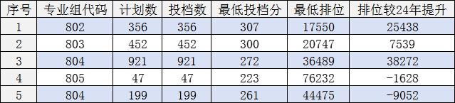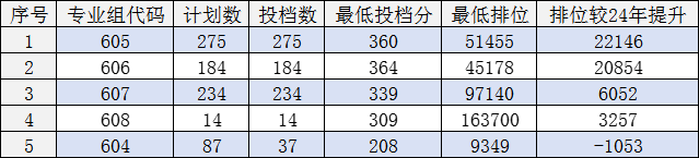 2025年学考投放计划794个,出档744人。普通类、中外合作办学等专业组全部满档出档,投档排位出现明显提升。