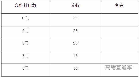 (2)合格性考试成绩加分:为鼓励学测成绩更好的考生报考我校,以学业水平合格性考试的合格科目数为依据,制定以下加分规则。