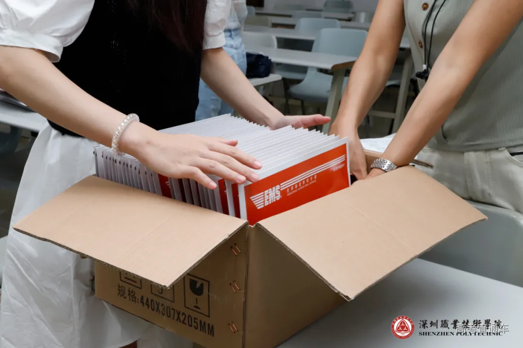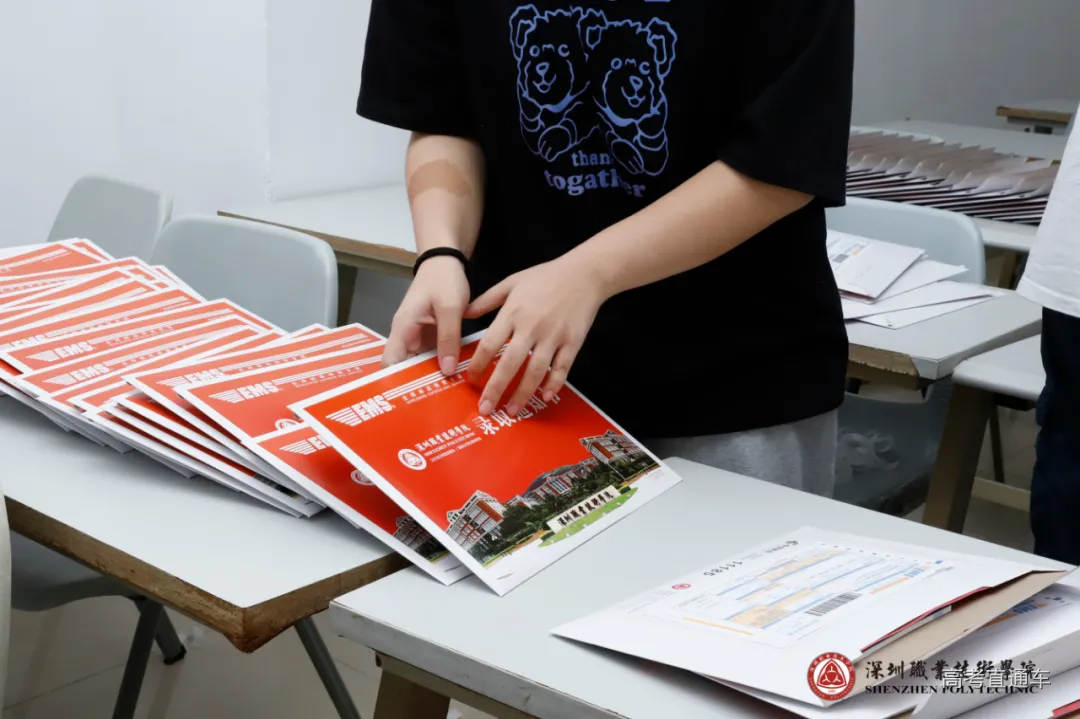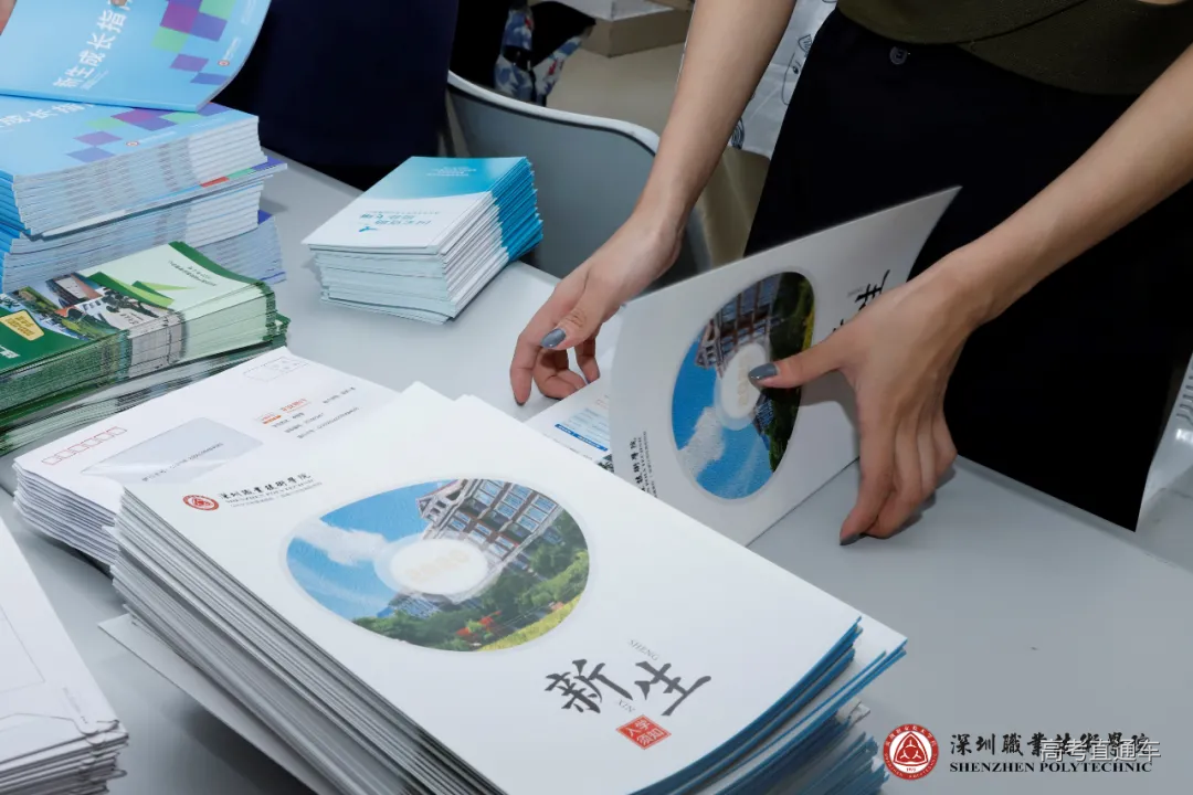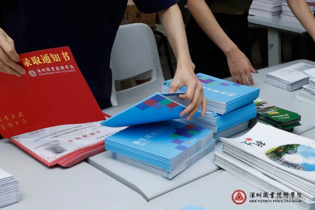 准备基础材料 提前准备好材料,后续效率才会更高~ 认真核对信息 核对新生录取通知书信息与平安银行信封上的信息,保证准确无误。 流水线装袋作业 三人一组流水线作业~这一刻我们都是尽职尽责没有感情的打包机器人~ 装袋完成运送至招就办 所有新生录取通知书资料整理完毕后,进行最后一次核对,确认无误后封袋整理收好,运送至招就办。 招就办核对数量 招就办核对数量,确保万无一失。整装待发的通知书排排站~就等邮局上门取件啦! 通 知 书 里 都 有 啥 全家福先送上! 拿到手就是深职人啦! 新生录取通知书 等星星盼月亮 就是为了见到你! 平安银行卡 在校期间充值校园卡唯一绑定银行卡 非常重要!学杂费、生活费可都靠它了! 2020年新生入学须知 (电子版详见次条推送) 各位萌新们收到后一定要仔仔细细阅读 2020新生成长指南 带你快速熟悉学校 了解大学三年可以怎么过 助你成为一名优秀的深职学子 高等学校学生资助政策简介 学校提供多项资助政策 在追梦路上永远的依靠 深圳市在校大学生医疗保险通知 进入大学开启新的篇章 不能少了医保为你保驾护航