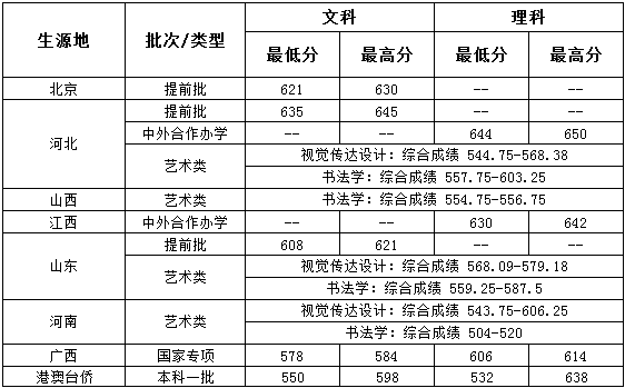 2019年本科录取分数统计