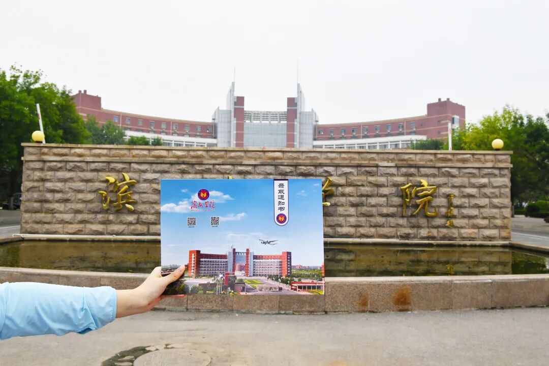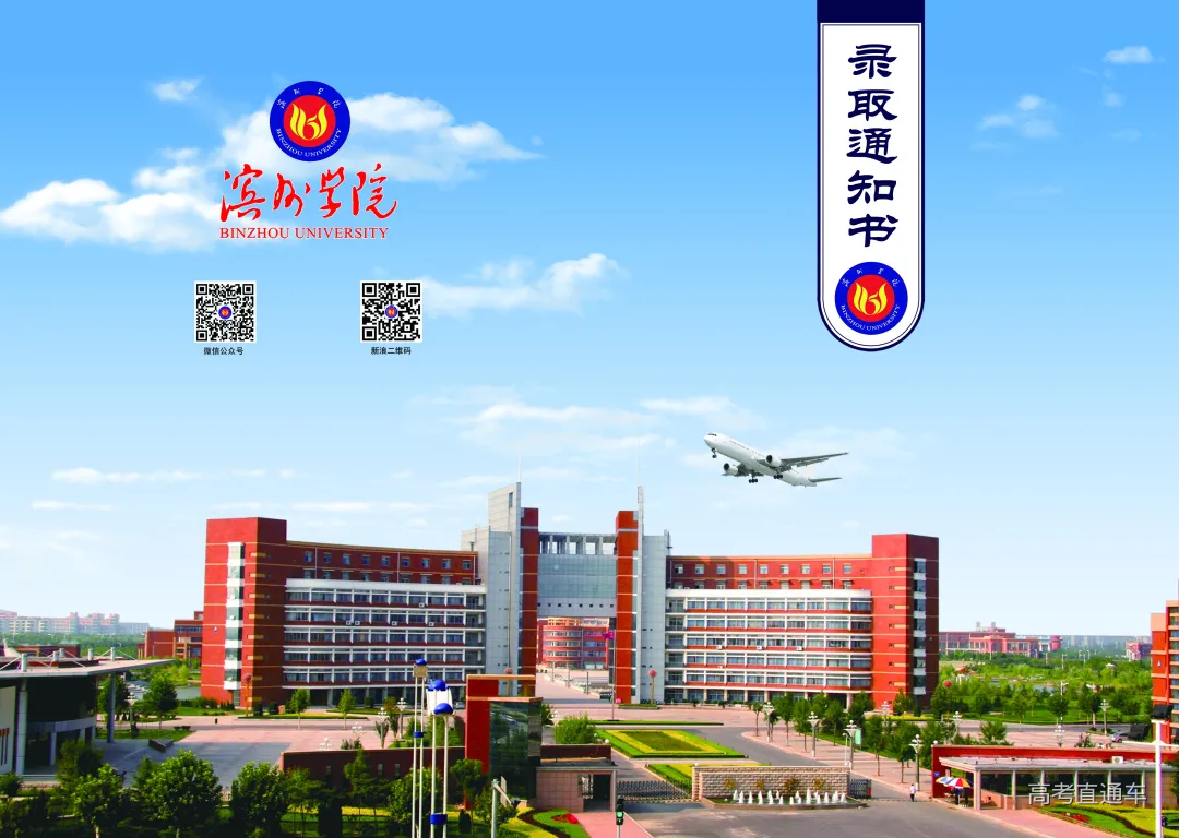 设计理念 滨州学院录取通知书以航空蓝为主色调,以滨州学院校徽、滨州学院校门和飞机图案等为背景。 录取通知书上的校徽以“滨州学院”的英文缩写“BZU”为元素,经组合变化为红黄蓝三原色组成的凤凰、花朵、青春之火,既充满了青春的朝气和生命的活力,又体现了学校深厚的文化底蕴和鲜明的地域特征;录取通知书上的飞机图案象征着滨州学院人对航空事业的不懈追求和逐梦蓝天,志在超越的信心和决心。 通知书内页以黄色为主色调,象征学校位于黄河三角洲腹地,学校精神“自强不息 守正出奇”和校训“明德 砥学 日新 致远”跃然纸上。 录取通知书整体富有设计感、现代感,典雅美观,兼具艺术价值和收藏价值。 千万次的回眸 换来今生相遇 这一刻 三生有幸 与你相遇 不久 你们就将收到 专属于你的 录取通知书 我们期待 与你相聚在 金秋时节的聚英湖畔